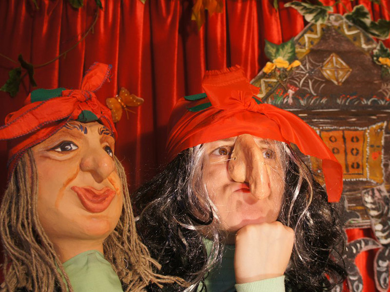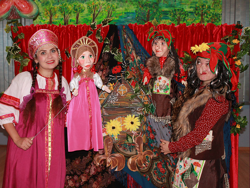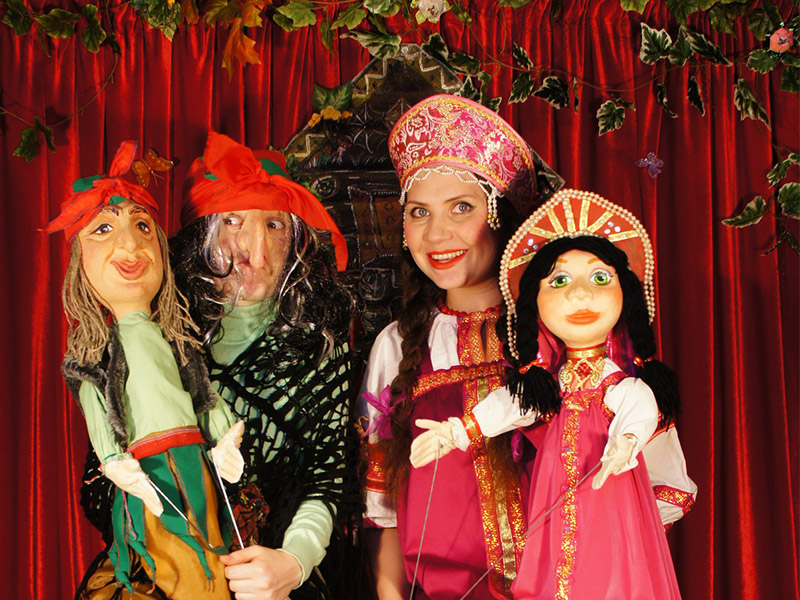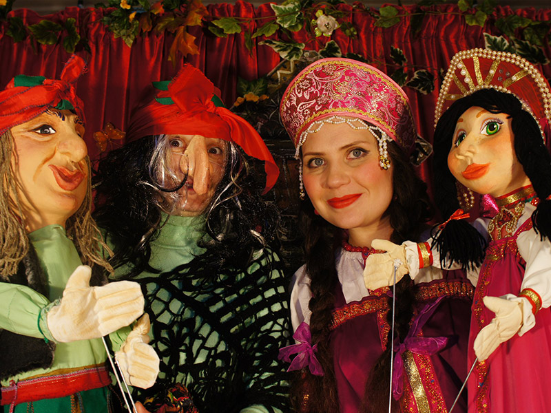 - В спектаклях используются крупные тростевые куклы, красочные и объемные декорации.